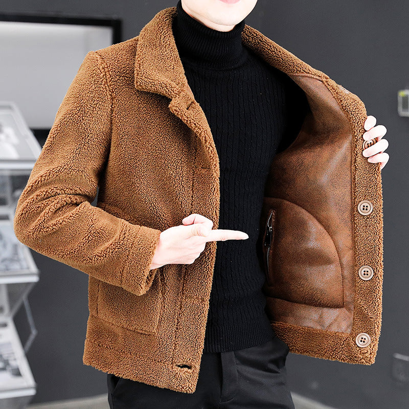 Stay warm and stylish with our REVERSIBLE FLEECE-LAMB'S WOOL JACKET. This jacket features a soft fleece on one side and cozy lamb's wool on the other, providing versatile comfort for any occasion. The reversible design allows for multiple looks, making it a practical and fashionable addition to your wardrobe.