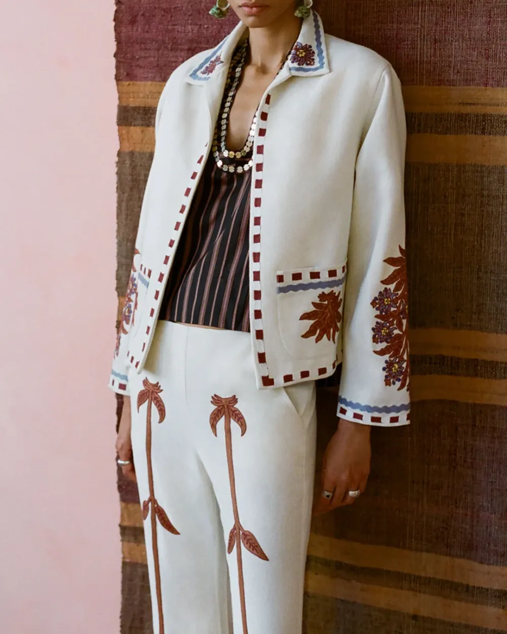 This textile was embroidered by hand. Subtle variations are part of the unique beauty of the garment and a signature of the artisan’s hand.