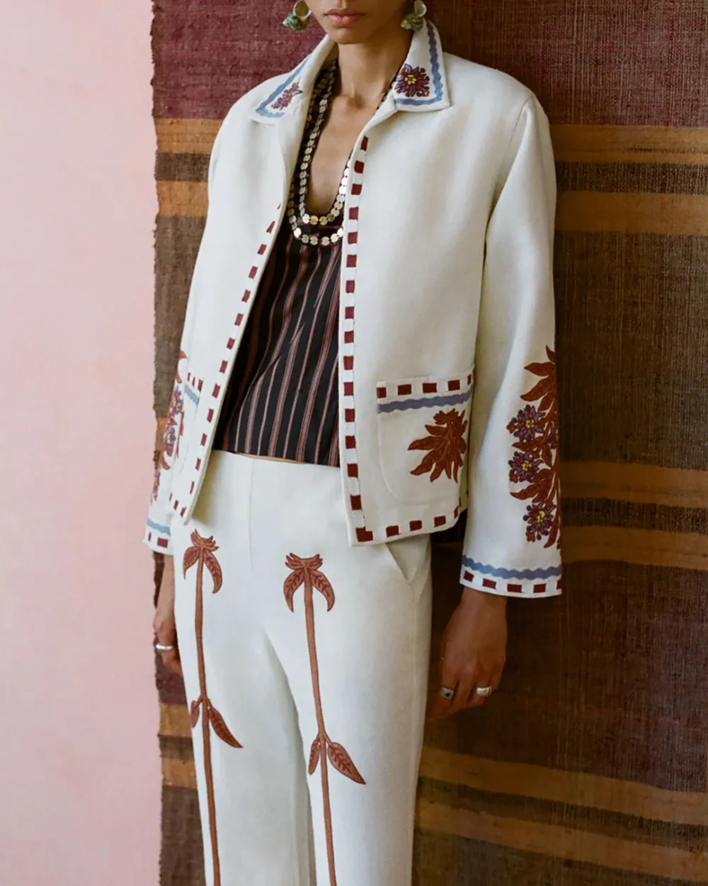 This textile was embellished by hand. Subtle variations are part of the unique beauty of the garment and a signature of the artisan’s hand.