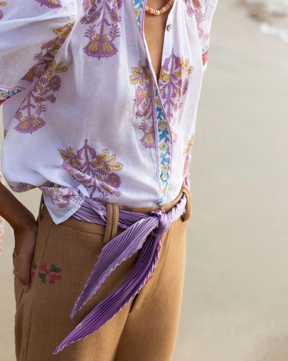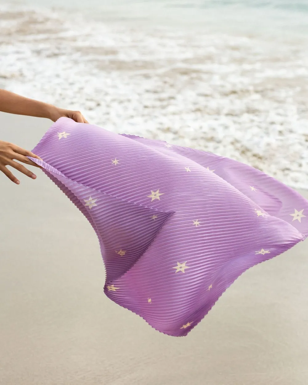 Rendered in plissé silk, our star-print scarf is made in France. Tied loosely, the micro-pleated skinny scarf is adds an extra bit of cool to any look.